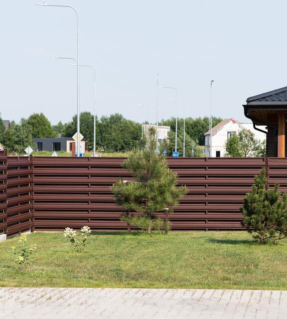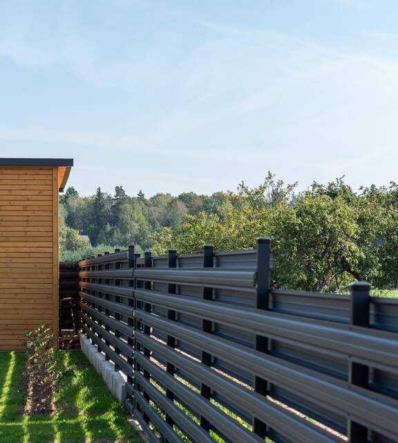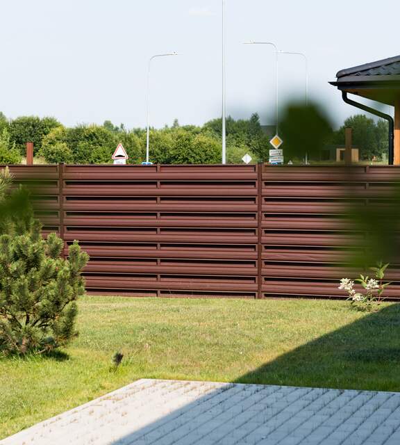 Metal pickets can be installed vertically or horizontally, allowing you to adjust the layout to your preferences and the surrounding architecture. The intuitive installation makes building a modern metal fence quick and requires no specialized knowledge. You can combine them with metal, concrete, masonry posts, or gabions to create unique compositions.