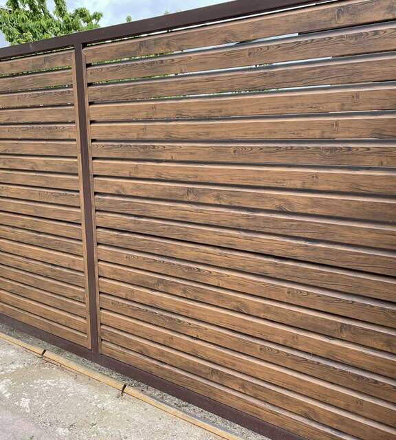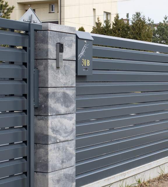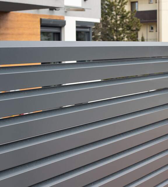Thanks to the easy adjustment of slat spacing, you can customize the level of privacy for your property. Additionally, the palisade slat infill can be combined with panels made from any materials, such as metal posts, masonry blocks, or gabions.