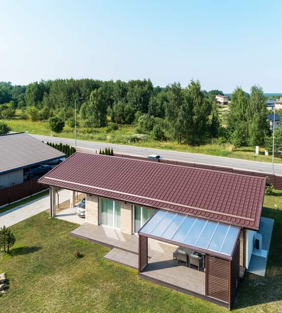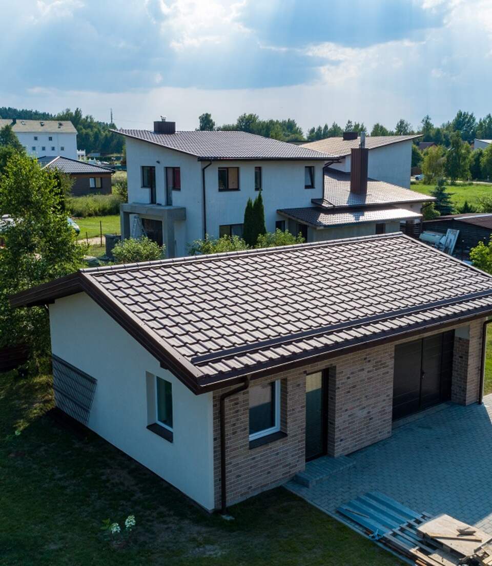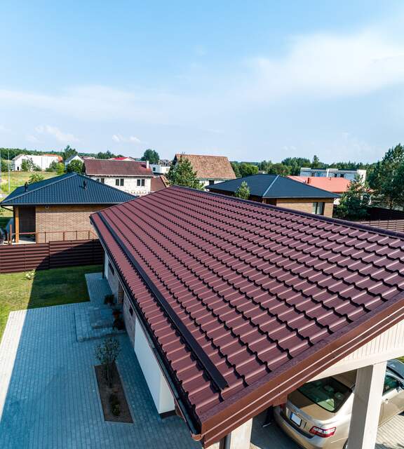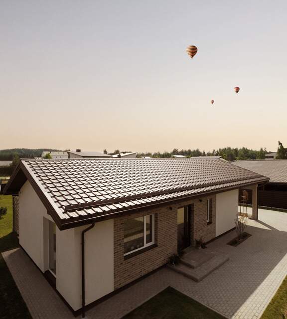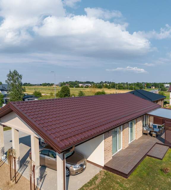 This is a metal roof tile that looks extraordinary. Dressed in the Polar MAT coating, it is like a star on the red carpet, whose charm and shine are brought out by the rays of the sun.