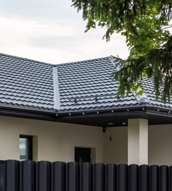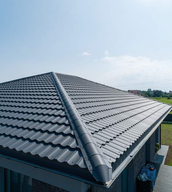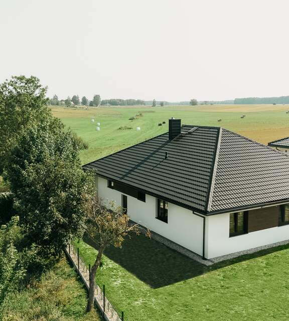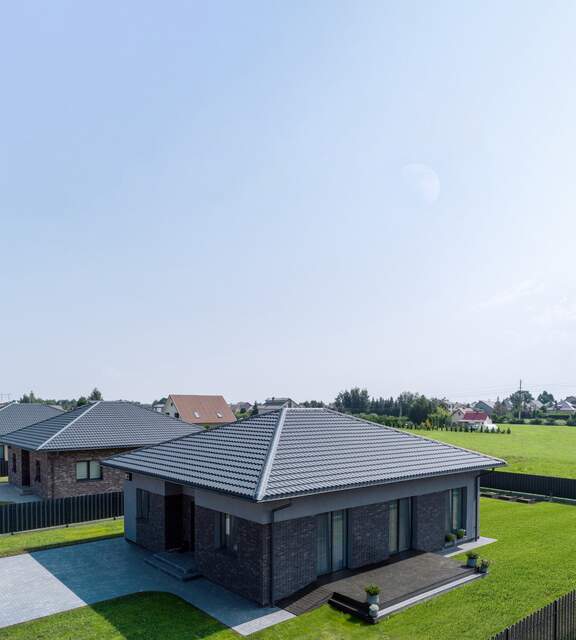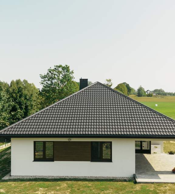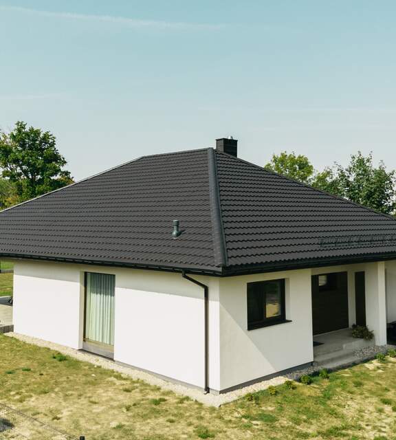 This solution was introduced to meet the market’s demand for materials that are easy to transport and install. This type of metal roof tile works perfectly on simple gable roofs as well as on more complex hip roofs.