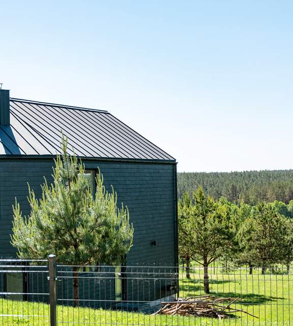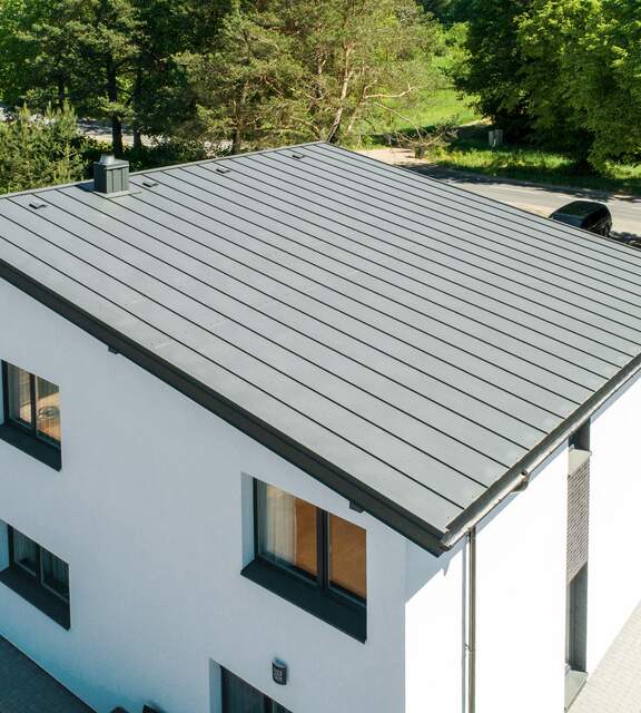 Delicate embossing on the surface of the standing seam panel creates a subtle visual effect. The rays of the sun give the roof covering an attractive appearance that changes depending on the time of day.