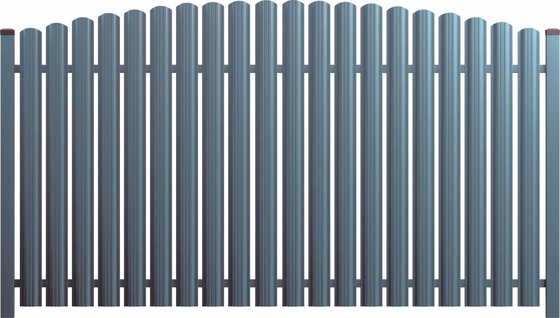 Metalinės tvoros lentelių konfigūracija lankiniu išdėstymu
