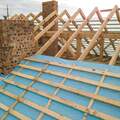 - Membrana dachowa – rozciągnij ją poziomo od okapu, przybijając do krokwi zszywkami. Dodaj ok. 25 cm na zakładach.